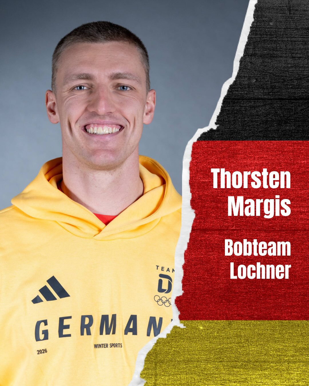 Unser Bob-Anschieber @thorstenmargis wird bei den Olympischen Winterspielen 2026 in Mailand & Cortina d’Ampezzo gemeinsam mit @bobteam.johannes.lochner OLYMPIASIEGER im Viererbob! 🇩🇪